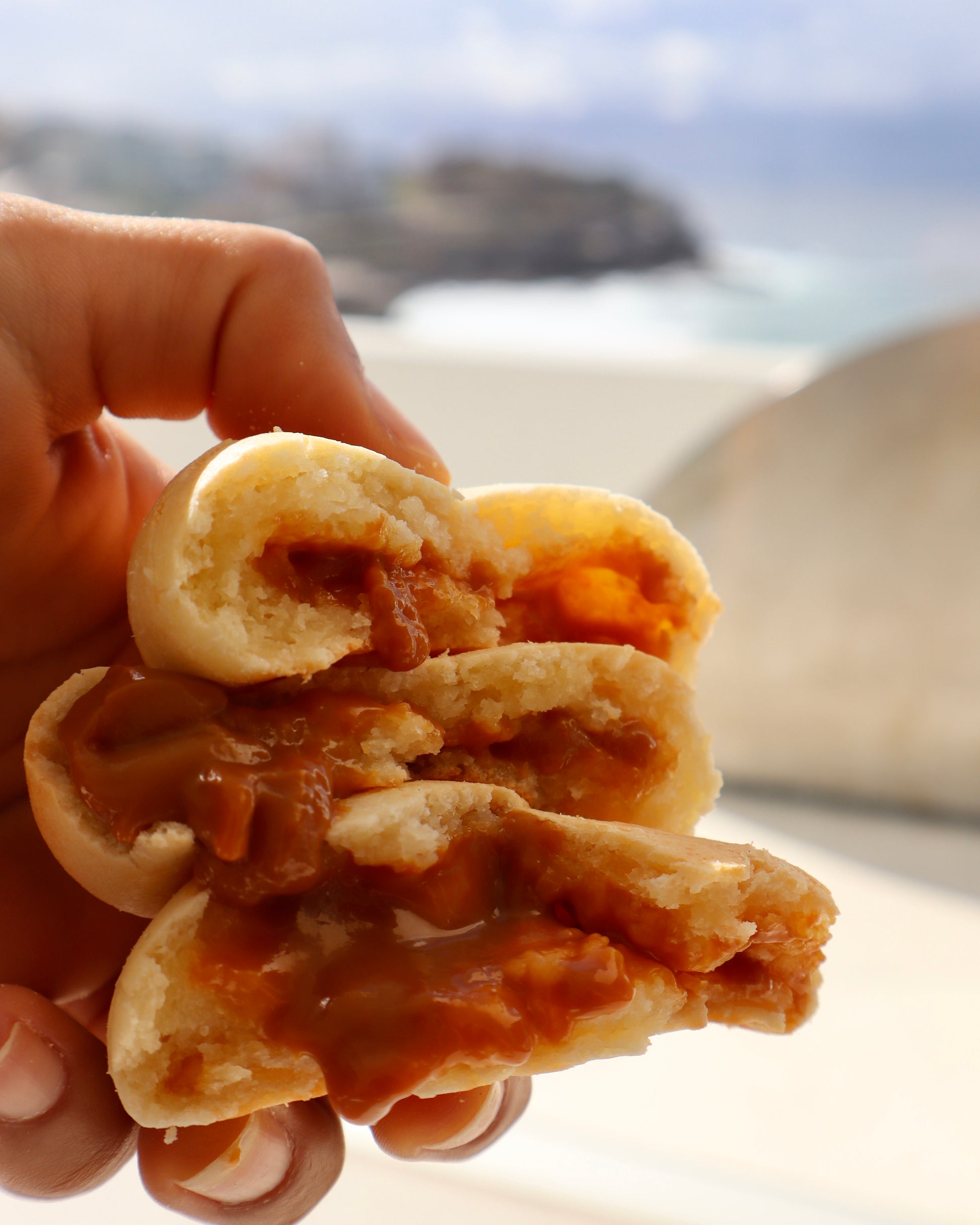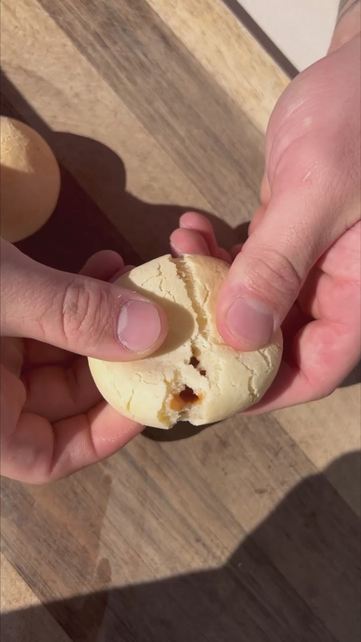 Por fuera, su capa doradita esconde un corazón tibio y dulce que explota en sabor al primer mordisco. La mezcla perfecta entre lo salado del queso y el dulzor profundo del dulce de leche hace que cada bocado sea una pequeña fiesta para el paladar.